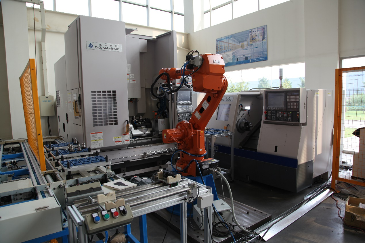 本項(xiàng)目系統(tǒng)包含1臺(tái)立式加工中心、1臺(tái)數(shù)控車床、配關(guān)節(jié)機(jī)械手、1套上下料物流線等硬件,實(shí)現(xiàn)自動(dòng)化生產(chǎn)加工。
